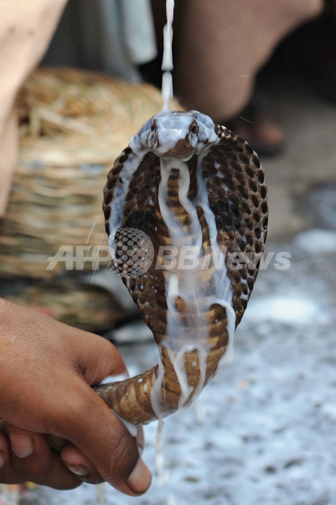 ニュース ライフ ヘビをあがめるヒンズー教の祭り、インド 2009年7月27日 18:27 発信地:アムリツァル/インド [ アジア・オセアニア インド ] このニュースをシェア ‹ › ❮ 4/4 ❯ インド北部アムリツァル(Amritsar)で26日、ヘビをあがめるヒンズー教の祭り「ナグ・パンチャミ(Nag-Panchami)」が行われた。モンスーンの季節と重なる「ナグ・パンチャミ」は、ヒンズー教のクリシュナ(Krishna)神がヘビの王「カーリヤ(Kaliya)」を退治したことを祝う祭りで、ヘビに貢ぎ物をする習慣がある。写真は、ヘビ使いに頭上から牛乳を浴びせられるコブラ(2009年7月26日撮影)。(c)AFP/NARINDER NANU 画像作成中 ! 【7月27日 AFP】インド北部アムリツァル(Amritsar)で26日、ヘビをあがめるヒンズー教の祭り「ナグ・パンチャミ(Nag-Panchami)」が行われた。モンスーンの季節と重なる「ナグ・パンチャミ」は、ヒンズー教のクリシュナ(Krishna)神がヘビの王「カーリヤ(Kaliya)」を退治したことを祝う祭りで、ヘビに貢ぎ物をする習慣がある。(c)AFP ライフ 一覧へ> メディア・報道関係・法人の方向け 写真・動画 購入のお問合せ>