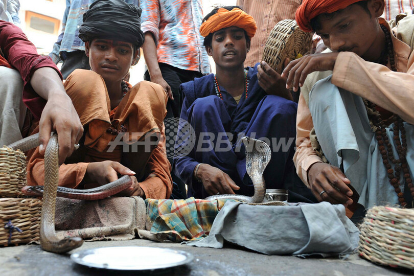 ニュース ライフ ヘビをあがめるヒンズー教の祭り、インド 2009年7月27日 18:27 発信地:アムリツァル/インド [ アジア・オセアニア インド ] このニュースをシェア ‹ › ❮ 2/4 ❯ インド北部アムリツァル(Amritsar)で26日、ヘビをあがめるヒンズー教の祭り「ナグ・パンチャミ(Nag-Panchami)」が行われた。モンスーンの季節と重なる「ナグ・パンチャミ」は、ヒンズー教のクリシュナ(Krishna)神がヘビの王「カーリヤ(Kaliya)」を退治したことを祝う祭りで、ヘビに貢ぎ物をする習慣がある。写真は、コブラに牛乳を飲ませるヘビ使いたち(2009年7月26日撮影)。(c)AFP/NARINDER NANU 画像作成中 ! 【7月27日 AFP】インド北部アムリツァル(Amritsar)で26日、ヘビをあがめるヒンズー教の祭り「ナグ・パンチャミ(Nag-Panchami)」が行われた。モンスーンの季節と重なる「ナグ・パンチャミ」は、ヒンズー教のクリシュナ(Krishna)神がヘビの王「カーリヤ(Kaliya)」を退治したことを祝う祭りで、ヘビに貢ぎ物をする習慣がある。(c)AFP ライフ 一覧へ> メディア・報道関係・法人の方向け 写真・動画 購入のお問合せ>