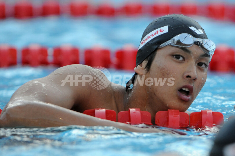 2位には52秒54でヘルゲ・ミーウ(%%Helge Meeuw%%、ドイツ)、3位には52秒64で前世界記録保持者のアシュウィン・ウィルデブール(%%Aschwin Wildeboer Faber%%、スペイン)が入った。入江陵介(%%Ryosuke Irie%%、日本)は52秒73で4位だった。写真は優勝を喜ぶ古賀淳也。(2009年7月28日撮影)(c)AFP/FRANCOIS XAVIER MARIT