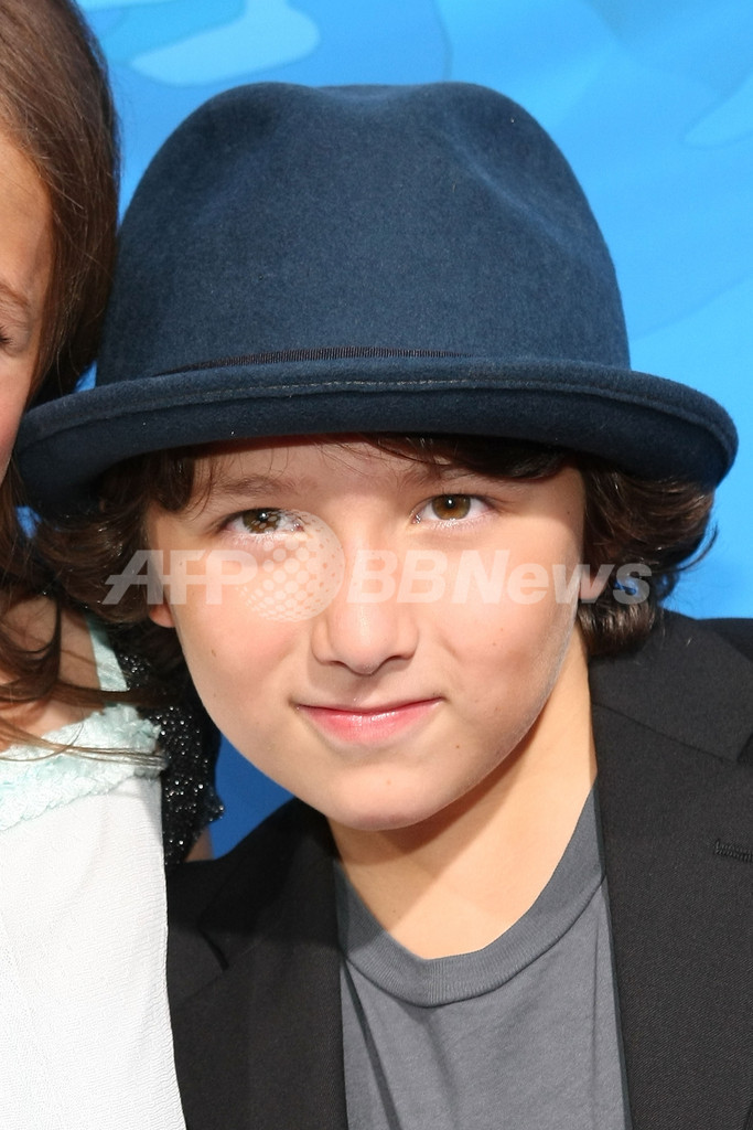 宮崎駿(Hayao Miyazaki)監督の『崖の上のポニョ』の上映会が27日、米カリフォルニア(California)州ハリウッド(Hollywood)のエル・キャピタン(El Capitan)劇場で開催された。英語版にはマット・デイモン(Matt Damon)、ケイト・ブランシェット(Cate Blanchett)、リーアム・ニーソン(Liam Neeson)など豪華俳優陣が声優として参加している。写真は、レッドカーペットで笑顔を見せる英語版で宗介の声を担当したフランキー・ジョナス(Frankie Jonas、2009年7月27日撮影)。(c)AFP/Getty Images/Kristian Dowling