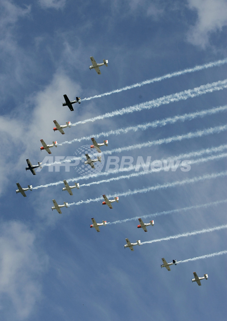 ニュース 環境・科学 宇宙旅行の「母艦」も登場、米航空ショー 2009年7月29日 15:46 発信地:オシュコシュ/米国 [ 北米 米国 ] このニュースをシェア ‹ › ❮ 3/11 ❯ 米ウィスコンシン(Wisconsin)州オシュコシュ(Oshkosh)で28日、エクスペリメンタル航空機協会(Experimental Aircraft Association)が主催する毎年恒例の航空ショーが開催された。写真は、編隊を組んで飛行する第二次世界大戦時の飛行機「warbirds」(2009年7月28日撮影)。(c)AFP/Getty Images/Jonathan Daniel 画像作成中 ! 【7月29日 AFP】米ウィスコンシン(Wisconsin)州オシュコシュ(Oshkosh)で28日、エクスペリメンタル航空機協会(Experimental Aircraft Association)が主催する毎年恒例の航空ショーが開催された。(c)AFP 環境・科学 一覧へ> メディア・報道関係・法人の方向け 写真・動画 購入のお問合せ>