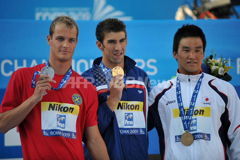 フェルプスが世界新で200メートルバタフライを制す 松田は3位に、世界水泳