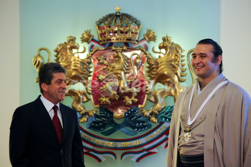 【7月29日 AFP】大相撲、ブルガリア出身の大関・琴欧洲(Kotooshu)が28日、ブルガリアの首都ソフィア(Sofia)にある大統領府を訪れ、ゲオルギ・パルヴァノフ(Georgi Parvanov)大統領から同国最高位の勲章「スタラ・プラニナ章(Stara Planina Order)」を授与された。(c)AFP