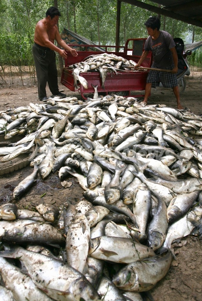 ニュース 環境・科学 化学工場そばの川で魚15トンが大量死 中国 2009年7月29日 20:59 発信地:鄭州/中国 [ 中国・台湾 中国 ] このニュースをシェア ‹ › ❮ 6/7 ❯ 中国・河南(Henan)省鄭州(Xinzhen)で27日、化学工場のそばを流れる川で大量の魚が死んでいるのが発見された。付近の住民らが死んだ魚を川から引き上げたところ、魚の死がいは15トン分もあった。 中国では、健康に深刻な影響を及ぼす化学物質の流出が日常的に起きている。30年近くにおよぶ急激な経済成長によって、中国の湖や川は非常に汚染された。一方、都会でも、住民たちが世界で最もひどいレベルの大気汚染に苦しんでいる。 写真は、住民らが川から引き上げた大量死した魚(2009年7月27日撮影)。(c)AFP/CHINA XTRA 画像作成中 ! 【7月29日 AFP】中国・河南(Henan)省鄭州(Xinzheng)で27日、化学工場のそばを流れる川で大量の魚が死んでいるのが発見された。(c)AFP 環境・科学 一覧へ> メディア・報道関係・法人の方向け 写真・動画 購入のお問合せ>