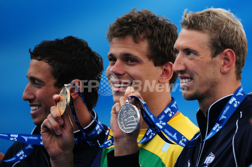 2位には47秒12で北京五輪同種目金メダリストのアラン・ベルナール(Alain Bernard、フランス)が、3位には47秒25を記録したフランスのフレッド・ブスケ(Fred Bousquet)が入った。(c)AFP