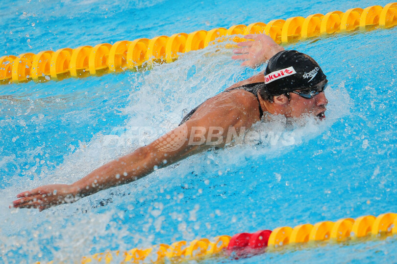 第13回世界水泳選手権(%%13th World Swimming Championships%%)競泳男子100メートルバタフライ準決勝。セルビアのミロラド・カビッチ(%%Milorad Cavic%%)が世界新記録となる50秒01を記録し、全体1位で決勝に進出した。カビッチは全米選手権(%%2009 ConocoPhillips USA Swimming National Championships%%)兼第13回世界水泳選手権代表選考会(%%13th FINA World Swimming Championships Trials%%)でマイケル・フェルプス(%%Michael Phelps%%)が樹立した世界記録50秒22を更新した。フェルプスは50秒48で全体2位で決勝進出を果たしている。写真は準決勝に臨むマイケル・フェルプス。(2009年7月31日撮影)(c)AFP/ALBERTO PIZZOLI