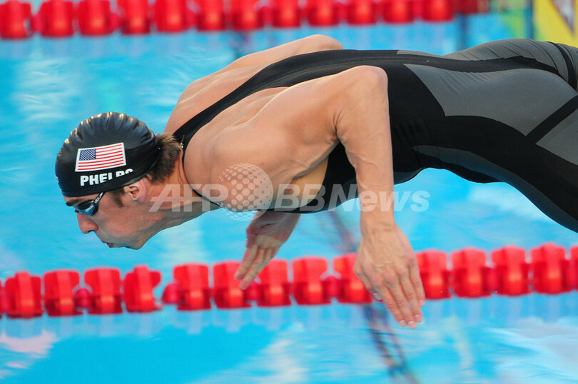第13回世界水泳選手権(%%13th World Swimming Championships%%)競泳男子100メートルバタフライ準決勝。セルビアのミロラド・カビッチ(%%Milorad Cavic%%)が世界新記録となる50秒01を記録し、全体1位で決勝に進出した。カビッチは全米選手権(%%2009 ConocoPhillips USA Swimming National Championships%%)兼第13回世界水泳選手権代表選考会(%%13th FINA World Swimming Championships Trials%%)でマイケル・フェルプス(%%Michael Phelps%%)が樹立した世界記録50秒22を更新した。フェルプスは50秒48で全体2位で決勝進出を果たしている。写真は準決勝に臨むマイケル・フェルプス。(2009年7月31日撮影)(c)AFP/ALBERTO PIZZOLI
