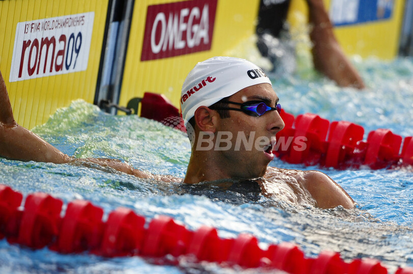 第13回世界水泳選手権(%%13th World Swimming Championships%%)競泳男子100メートルバタフライ準決勝。セルビアのミロラド・カビッチ(%%Milorad Cavic%%)が世界新記録となる50秒01を記録し、全体1位で決勝に進出した。カビッチは全米選手権(%%2009 ConocoPhillips USA Swimming National Championships%%)兼第13回世界水泳選手権代表選考会(%%13th FINA World Swimming Championships Trials%%)でマイケル・フェルプス(%%Michael Phelps%%)が樹立した世界記録50秒22を更新した。フェルプスは50秒48で全体2位で決勝進出を果たしている。写真はレース後にタイムを確認するミロラド・カビッチ。(2009年7月31日撮影)(c)AFP/FILIPPO MONTEFORTE