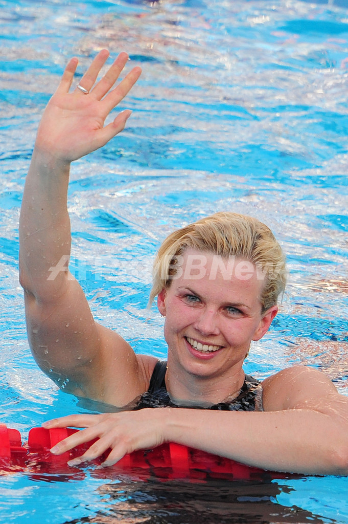 2位には52秒87を記録した英国のフランセスカ・ハルサル(Francesca Halsall)が、3位には52秒93を記録したオーストラリアのリビー・トリケット(Libby Trickett)が入った。(c)AFP