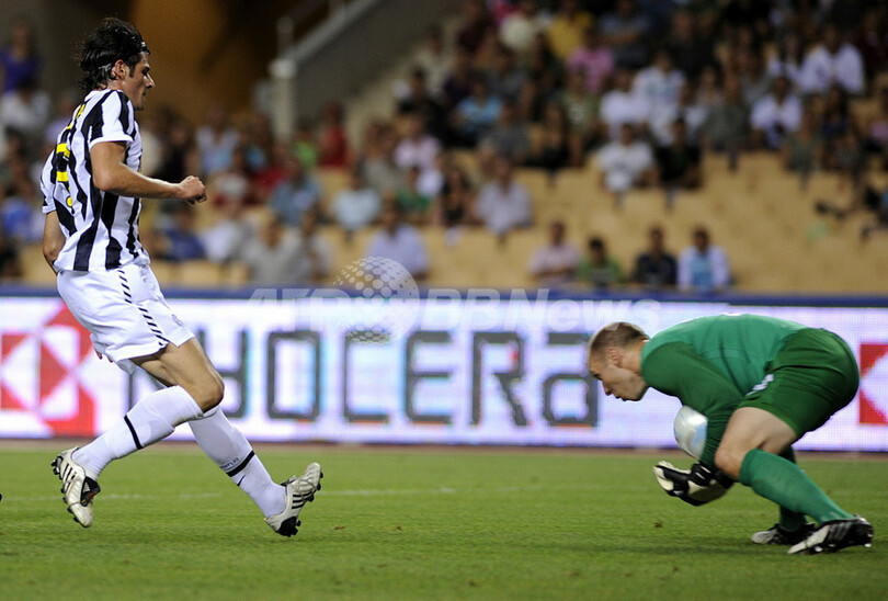 試合はPK戦にまでもつれ、アストン・ビラは6人目のカルロス・クエジャル(Carlos Cuellar)が成功したのに対し、ユベントスはニコラ・レグロッターリエ(Nicola Legrottaglie)が枠を外し、アストン・ビラが勝利を収めた。(c)AFP