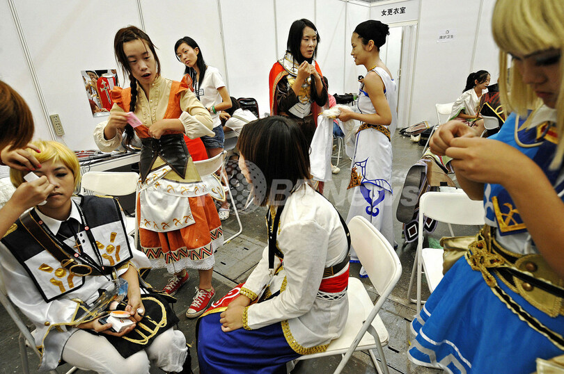 日本発の「コスプレ」は、今や中国でも大人気。ファンタジーを求める若者たちが、お気に入りのビデオゲームやアニメキャラクターの扮装(ふんそう)で舞台で仮想現実の世界を展開する。「ChinaJoy」主催者によると、今回の来場者は2万人を超えた。