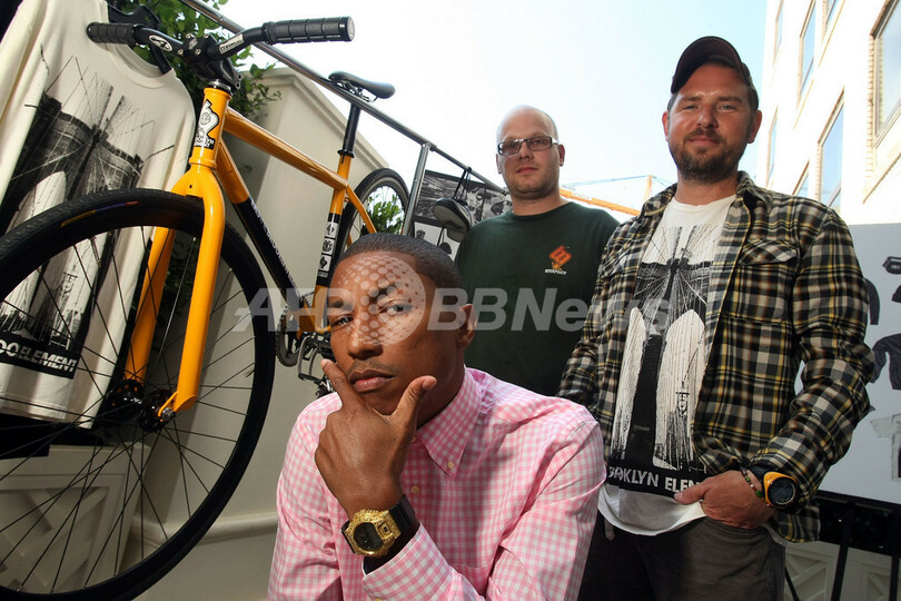 これを記念して1日、米ビバリーヒルズ(Beverly Hills)で発売記念イベントが開催され、「ブルックリンマシンワークス」創設者のジョー・アベディシアン(Joe Avedisian)や、ミュージシャンであり同ブランドの共同経営者のファレル・ウィリアムス(Pharrell Williams)、「エレメント」創設者のジョニー・シラレフ(Johnny Schillereff)らが新作を披露した。(c)AFP/Getty Images