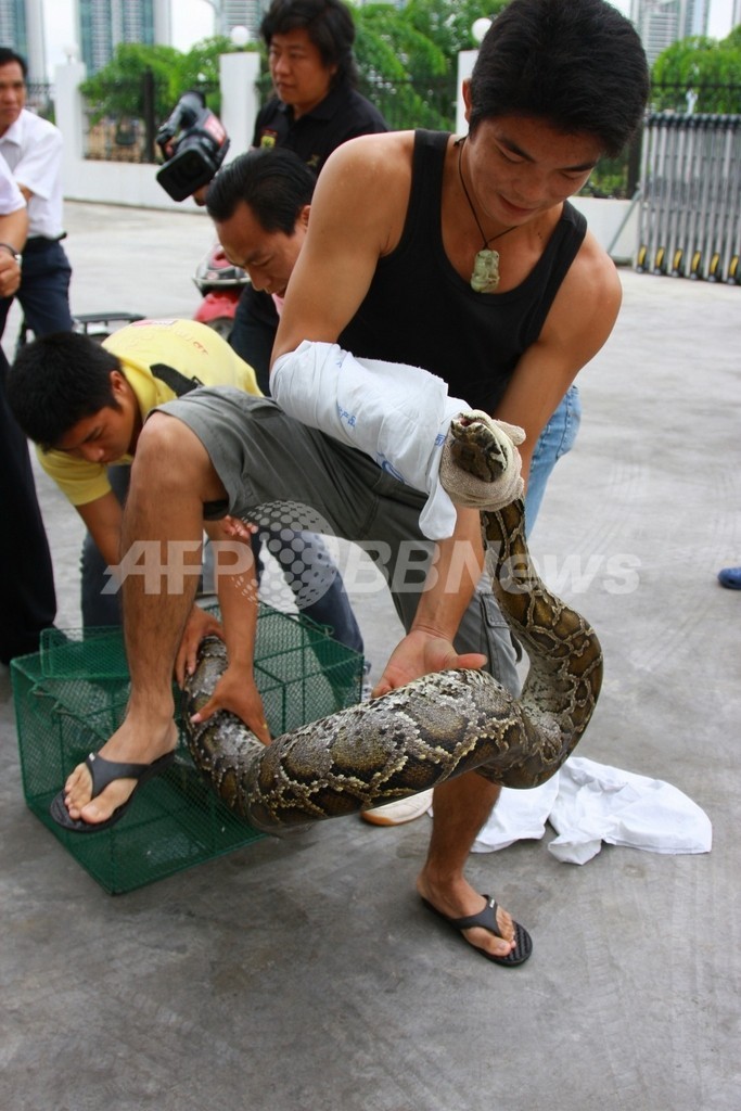 ニュース ライフ こぼれ話 野菜市場に大ヘビ出現、中国 2009年8月4日 22:02 発信地:三亜/中国 [ 中国・台湾 中国 ] このニュースをシェア ‹ › ❮ 2/5 ❯ 中国・海南島(Hainan)三亜(Sanya)市で、野菜市場で大ヘビが捕獲された。ヘビはその後、同市の動物園に預けられた(2009年7月31日撮影)。(c)AFP/CHINA XTRA 画像作成中 ! 【8月4日 AFP】31日、中国・海南島(Hainan)三亜(Sanya)市の野菜市場で大ヘビが捕獲された。ヘビはその後、同市の動物園に預けられた。(c)AFP ライフ 一覧へ> メディア・報道関係・法人の方向け 写真・動画 購入のお問合せ>