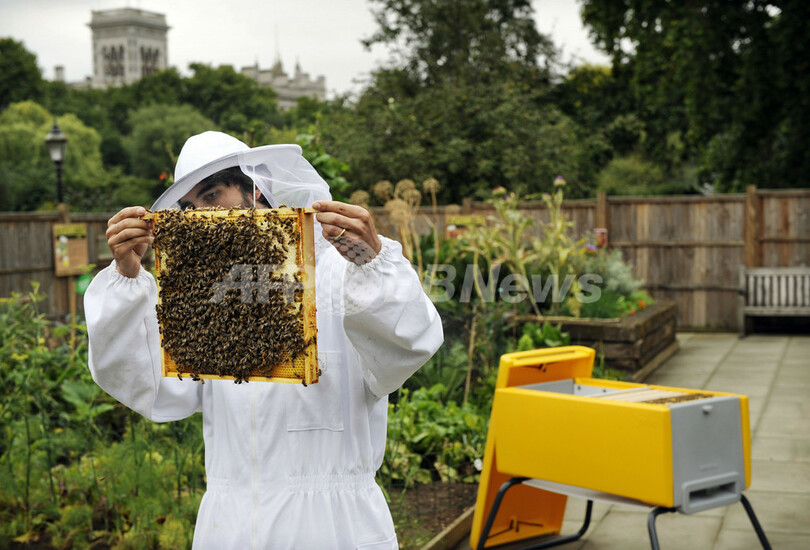 英政府の統計によれば、同国内のミツバチの数はここ2年で15%減少した。ミツバチを脅かす病気が増えていることや、都市開発で花が減っていることが原因だという。(c)AFP