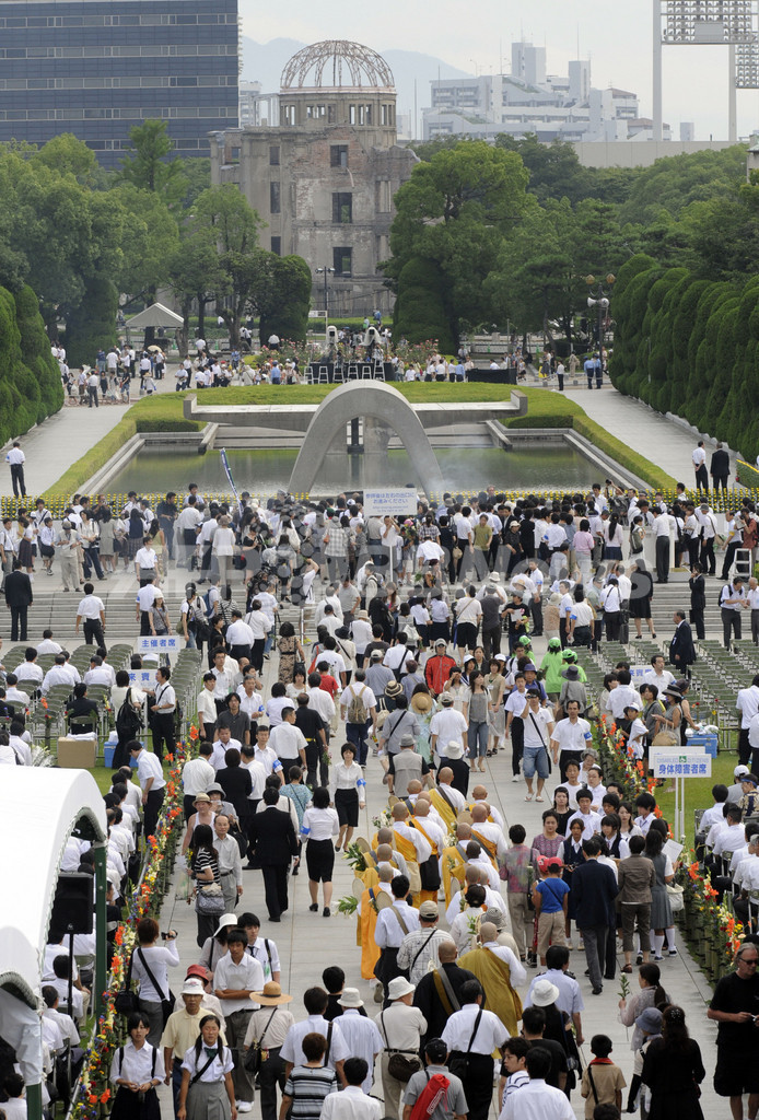 【8月6日 AFP】広島は6日、64回目の「原爆の日」を迎え、爆心地近くの平和記念公園では市主催の「原爆死没者慰霊式・平和祈念式」(平和記念式典)が営まれた。