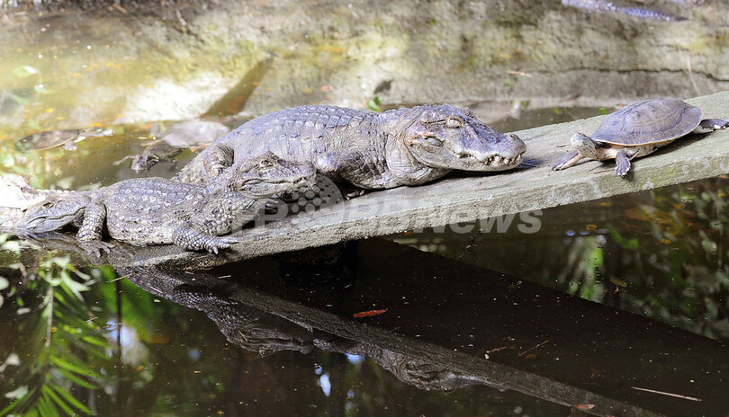 ブラジル・リオデジャネイロ(Rio de Janeiro)の東約20キロにあるニテロイ(Niteroi)動物園では、けがをしたり、置き去りにされたり、生命の危険にさらされた動物が、自然界に返されるまで保護されている。南半球の冬にあたるこの時期、アルゼンチン南部パタゴニア(Patagonia)からアザラシ、アシカ、ペンギンなどの多くの動物がブラジル南東部の沿岸に渡ってくる。写真は、ニテロイ動物園の動物病院で保護されているワニの1種クチヒロカイマンとカメ(2009年8月5日撮影)。(c)AFP/VANDERLEI ALMEIDA