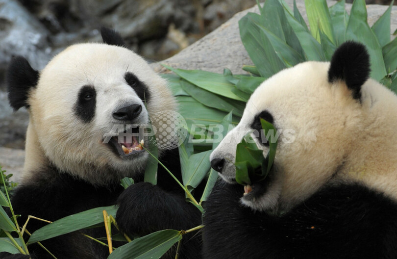 【8月9日 AFP】香港の香港海洋公園(Ocean Park Hong Kong)で9日、4歳になったジャイアントパンダ、ルールー(Le Le)とインイン(Ying Ying)のための誕生会が開かれた。 ルールーとインインは中国への香港返還10周年を記念して2007年4月に、四川(Sichuan)省のパンダ自然保護研究センターから寄贈された。(c)AFP
