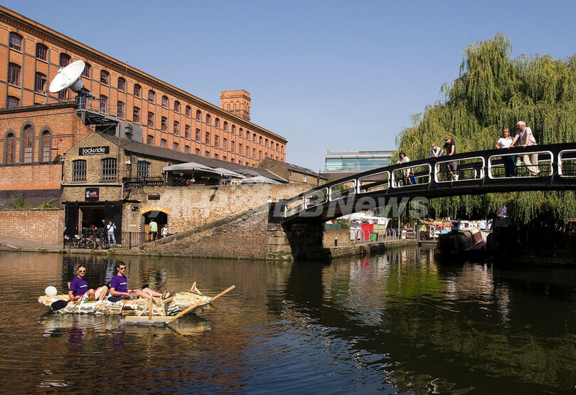 【8月10日 AFP】ニュージーランドの男性2人が8日、ロンドン(London)北部のカムデン(Camden)運河で、自作のペットボトルで作った船「ボートル(Boatle)」を披露した。制作にかかった期間は5か月。マーセル・サイロン(Marcel Syron)さんとキャメロン・ホルム(Cameron Holm)さんは9月2日、「ボートル」で英仏海峡横断に挑戦する。挑戦で得られた収益はすべて、英メンタルヘルス財団(Mental Health Foundation)に寄付される。(c)AFP