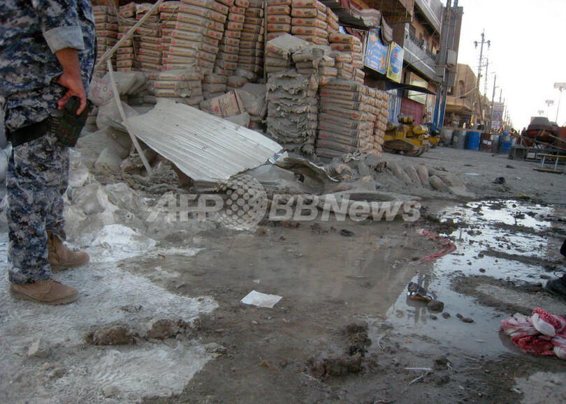 一方、バグダッドでも早朝、日雇い仕事を探す労働者たちが集まっていた近辺で、2発の爆弾が爆発した。警察と内務省の発表によると、死者7人、負傷者46人を出した最初の爆弾は、バグダッド西部アメル(Amel)地区でセメント袋のなかに隠されていた。二番目は自動車爆弾でバグダッド北部のShurta Arbaaで爆発し、9人が死亡、36人が負傷した。(c)AFP/Mujahid Mohammed