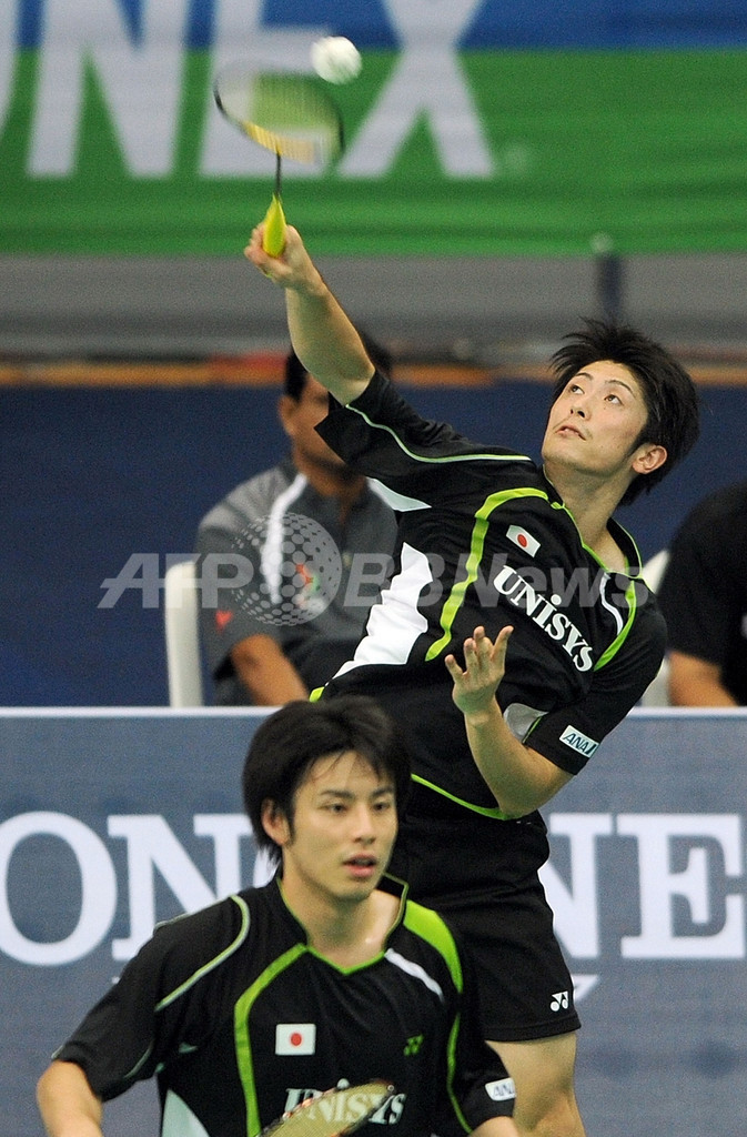 ダブルスでは男子の数野健太(Kenta Kazuno)/早川賢一(Kenichi Hayakawa)組がインドのRupesh Kumar/Sanave Thomasを21-13、23-21で、女子の松尾静香(Shizuka Matsuo)/内藤真実(Mami Naito)組がマレーシアのYin Loo Lim/Marylen Poau Leng Ng組を21-8、21-16で、混合の平田典靖(Noriyasu Hirata)/松尾静香組がインドのArun Vishnu/Aparna Balan組を21-14、22-20で下し、それぞれ2回戦に進んだ。(c)AFP