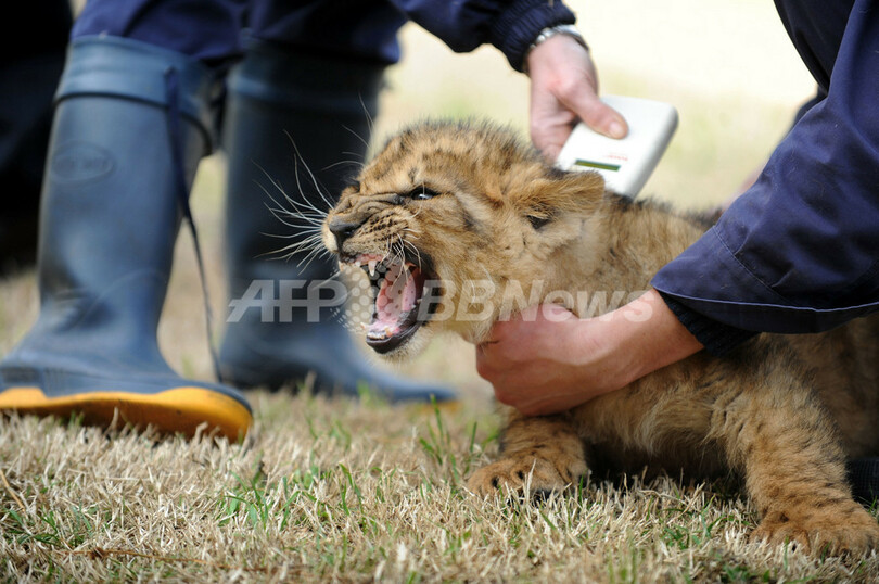 ニュース ライフ ライオン夫婦、10年越しの待望の赤ちゃんは四つ子 ウルグアイ 2009年8月11日 14:33 発信地:モンテビデオ/ウルグアイ [ 中南米 ウルグアイ ] このニュースをシェア ‹ › ❮ 11/18 ❯ ウルグアイの首都モンテビデオ(Montevideo)のルコック公園(Parque Lecoq)の動物園で7日、5月20日に誕生した4匹の子どもライオンが公開された。親ライオンは10年間も子宝に恵まれず、ようやく繁殖に成功した。こうしたことは飼育されているライオンでは珍しい。写真は、4匹のうちの1匹の子ライオンの検査を行う獣医師(2009年8月7日撮影)。(c)AFP/Pablo PORCIUNCULA 画像作成中 ! 【8月11日 AFP】ウルグアイの首都モンテビデオ(Montevideo)のルコック公園(Parque Lecoq)の動物園で7日、5月20日に誕生した4匹の子どもライオンが公開された。親ライオンは10年間も子宝に恵まれず、ようやく繁殖に成功した。こうしたことは飼育されているライオンでは珍しい。(c)AFP ライフ 一覧へ> メディア・報道関係・法人の方向け 写真・動画 購入のお問合せ>