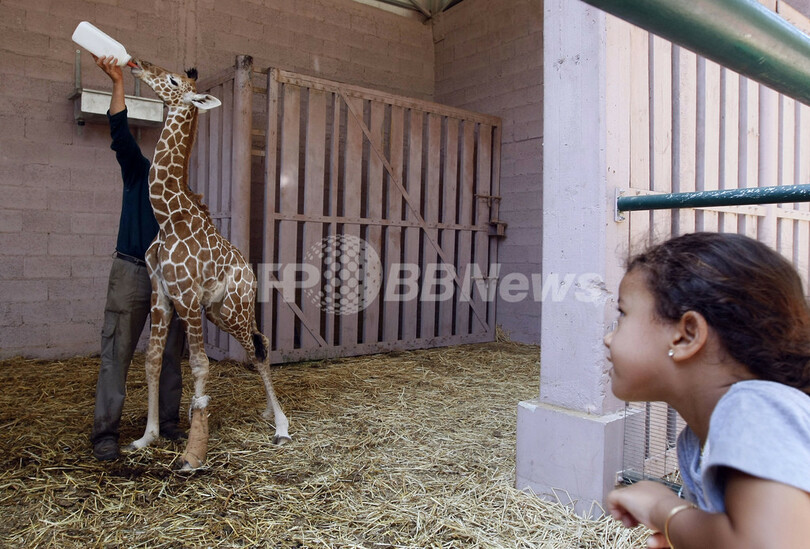 ニュース ライフ 生後8日の赤ちゃんキリンをお披露目、イスラエル 2009年8月11日 11:29 発信地:ラマトガン/イスラエル [ 中東・北アフリカ イスラエル ] このニュースをシェア ‹ › ❮ 2/5 ❯ イスラエル・テルアビブ(Tel Aviv)近くのラマトガン(Ramat Gan)の動物園で、脚に問題があり母キリンの母乳を飲めない生後8日の赤ちゃんキリン、ダーウィン(Darwin)に獣医がミルクを飲ませるのを見つめる少女(2009年8月10日撮影)。(c)AFP/JACK GUEZ 画像作成中 ! 【8月11日 AFP】イスラエルのテルアビブ(Tel Aviv)近郊のラマトガン動物園(Ramat Gan Zoo)で10日、生後8日の赤ちゃんキリン、ダーウィン(Darwin)が公開された。ダーウィンは、脚に問題があり母キリンの母乳を飲めないため、獣医がミルクを飲ませている。(c)AFP ライフ 一覧へ> メディア・報道関係・法人の方向け 写真・動画 購入のお問合せ>