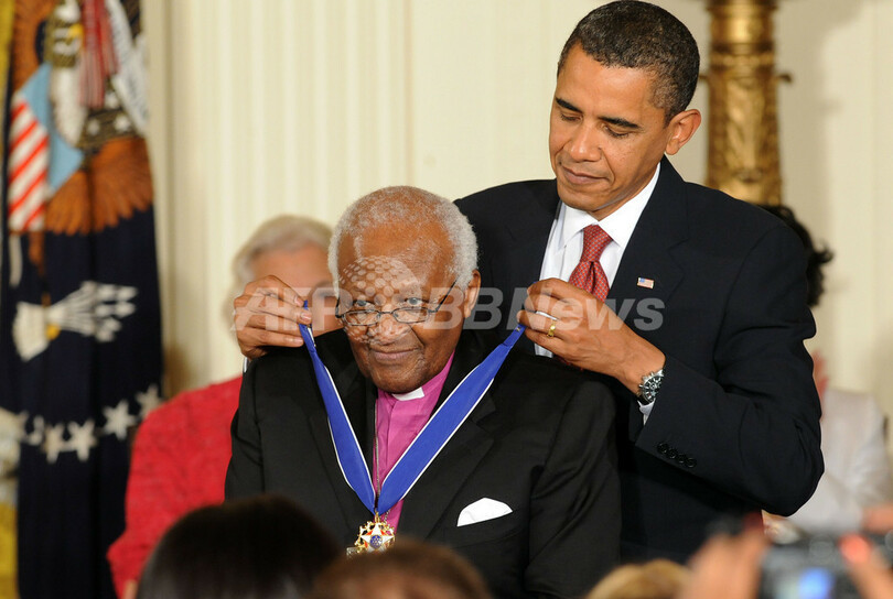 ニュース 政治・経済 オバマ大統領、ホーキング博士らに「大統領自由勲章」授与 2009年8月13日 19:26 発信地:ワシントンD.C./米国 [ 北米 米国 ] このニュースをシェア ‹ › ❮ 3/6 ❯ ホワイトハウスでバラク・オバマ(Barack Obama)米大統領から「大統領自由勲章(Presidential Medal of Freedom)」を授与される南アフリカのデズモンド・ツツ(Desmond Tutu)元大司教(2009年8月12日撮影)。(c)AFP/Jewel SAMAD 画像作成中 ! 【8月13日 AFP】バラク・オバマ(Barack Obama)米大統領は12日、ホワイトハウス(White House)で、文民に授けられる最高位の勲章「大統領自由勲章(Presidential Medal of Freedom)」を英国の物理学者スティーブン・ホーキング(Stephen Hawking)博士や南アフリカ聖公会のデズモンド・ツツ(Desmond Tutu)大主教ら計16人に授与した。(c)AFP 政治・経済 一覧へ> メディア・報道関係・法人の方向け 写真・動画 購入のお問合せ>