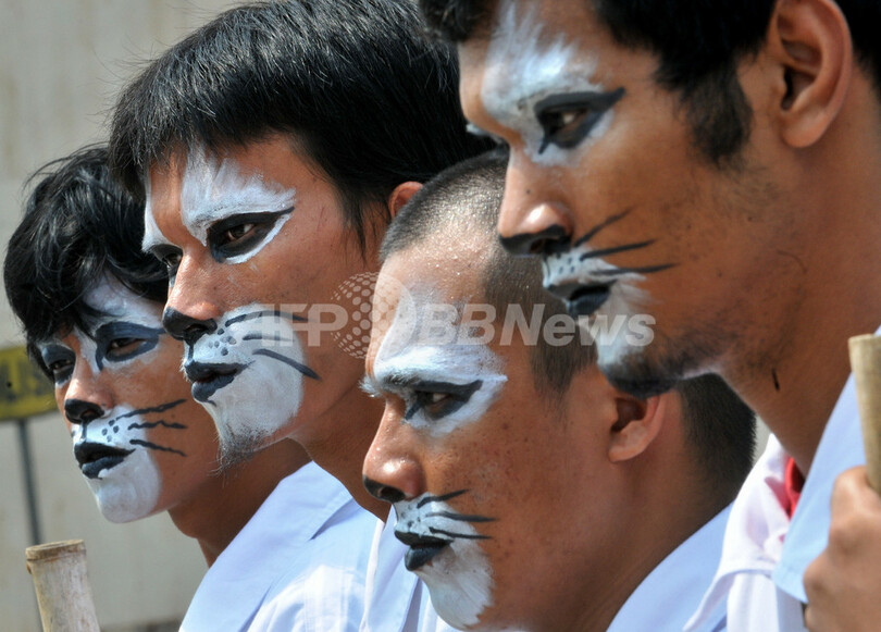 野生生物保護団体、トラにふんしてデモ インドネシア