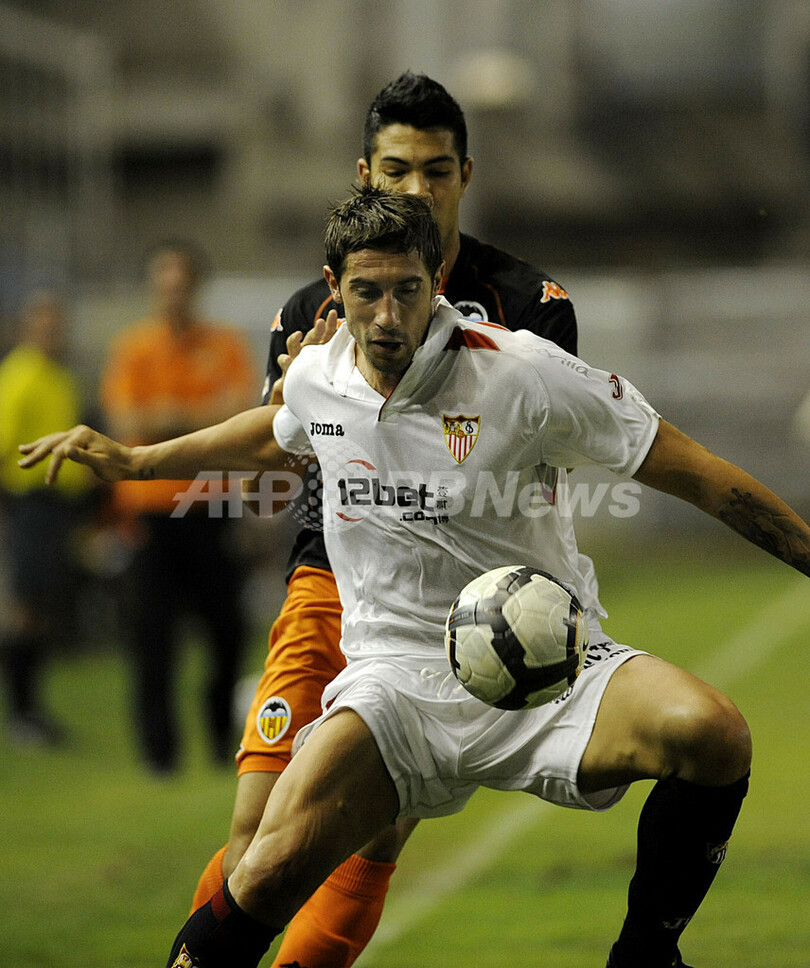 Valencia CF)。試合はセビージャが2-0で勝利した。(c)AFP