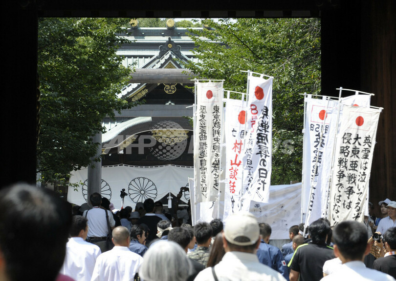 ニュース 戦争・紛争 終戦記念日の靖国神社 2009年8月15日 19:49 発信地:東京 [ アジア・オセアニア 東京 ] このニュースをシェア ‹ › ❮ 2/8 ❯ 終戦記念日の15日、靖国神社(Yasukuni Shrine)に大勢の参拝客が訪れた。写真は、横断幕を掲げて境内に行進する右翼系団体メンバーら(2009年8月15日撮影)。(c)AFP/TOSHIFUMI KITAMURA 画像作成中 ! 【8月15日 AFP】終戦記念日の15日、靖国神社に大勢の参拝客が訪れた。(c)AFP 戦争・紛争 一覧へ> メディア・報道関係・法人の方向け 写真・動画 購入のお問合せ>