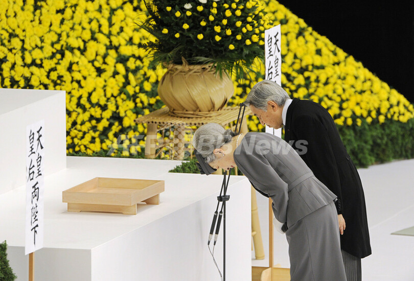 ニュース 戦争・紛争 64回目の終戦記念日、戦没者追悼式開かれる 2009年8月15日 19:48 発信地:東京 [ アジア・オセアニア 東京 ] このニュースをシェア ‹ › ❮ 5/8 ❯ 終戦記念日の15日、政府主催の全国戦没者追悼式が日本武道館で開かれ、天皇、皇后両陛下や麻生太郎(Taro Aso)首相が出席した。写真は、天皇陛下(右、Emperor Akihito)と皇后さま(Empress Michiko、2009年8月15日撮影)。(c)AFP/Kazuhiro NOGI 画像作成中 ! 【8月15日 AFP】終戦記念日の15日、政府主催の全国戦没者追悼式が日本武道館で開かれ、天皇、皇后両陛下や麻生太郎(Taro Aso)首相が出席した。(c)AFP 戦争・紛争 一覧へ> メディア・報道関係・法人の方向け 写真・動画 購入のお問合せ>