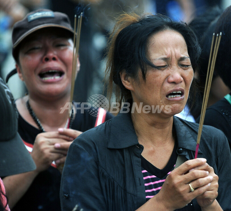 一方、馬総統は謝罪の数時間後に台中(Taichung)の野球場の始球式に登場。馬氏は結局、会場からのブーイングがあまりに激しかったため、ボールを投げることなくスタジアムを後にした。スタジアムの外では、男性が取材カメラの前で「これだけ多くの人が死んでいるのに、始球式に参加するのか!夜はよく眠れますか!?」と叫ぶ姿もみられた。(c)AFP/Polly Hui