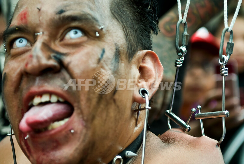 ニュース ライフ こぼれ話 「背中の皮膚にフックで宙づり」でギネスに挑戦 2009年8月16日 15:58 発信地:メキシコ市/メキシコ [ 中南米 メキシコ ] このニュースをシェア ‹ › ❮ 3/8 ❯ 背中に直接フックを引っかけて3時間宙づり状態でいるというギネス世界記録に挑戦中の、タトゥーアーティストのホルヘ・カストロ(Jorge Castro)さん。この挑戦は、メキシコの首都メキシコ市(Mexico City)にある世界貿易センター(World Trade Center)で開催された国際タトゥー大会の期間中に行われた。(2009年8月15日撮影)。(c)AFP/Ronaldo Schemidt 画像作成中 ! 【8月16日 AFP】背中の皮膚に直接フックを引っかけ3時間宙づり状態でいるというギネス世界記録に挑戦する、タトゥーアーティストのホルヘ・カストロ(Jorge Castro)さん。この挑戦は、メキシコの首都メキシコ市(Mexico City)にある世界貿易センター(World Trade Center)で開催された国際タトゥー大会の期間中に行われた。(c)AFP ライフ 一覧へ> メディア・報道関係・法人の方向け 写真・動画 購入のお問合せ>