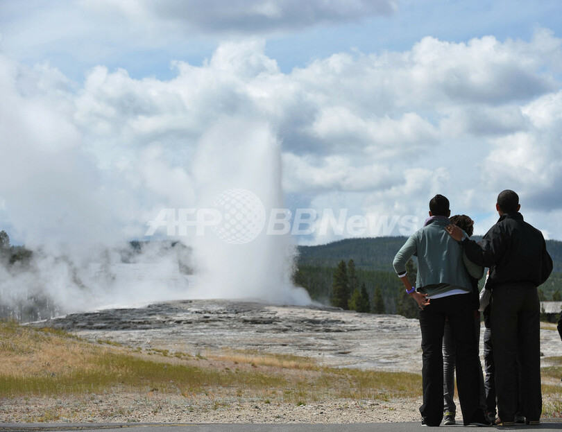 11歳の時以来の訪問だというオバマ氏。パークレンジャーから景観に変化はないかと尋ねられ、「変わっていないね」と答えると、すかさずミシェル夫人が「この人はまだそんな年寄りじゃないわ」と突っ込む一幕もあった。(c)AFP