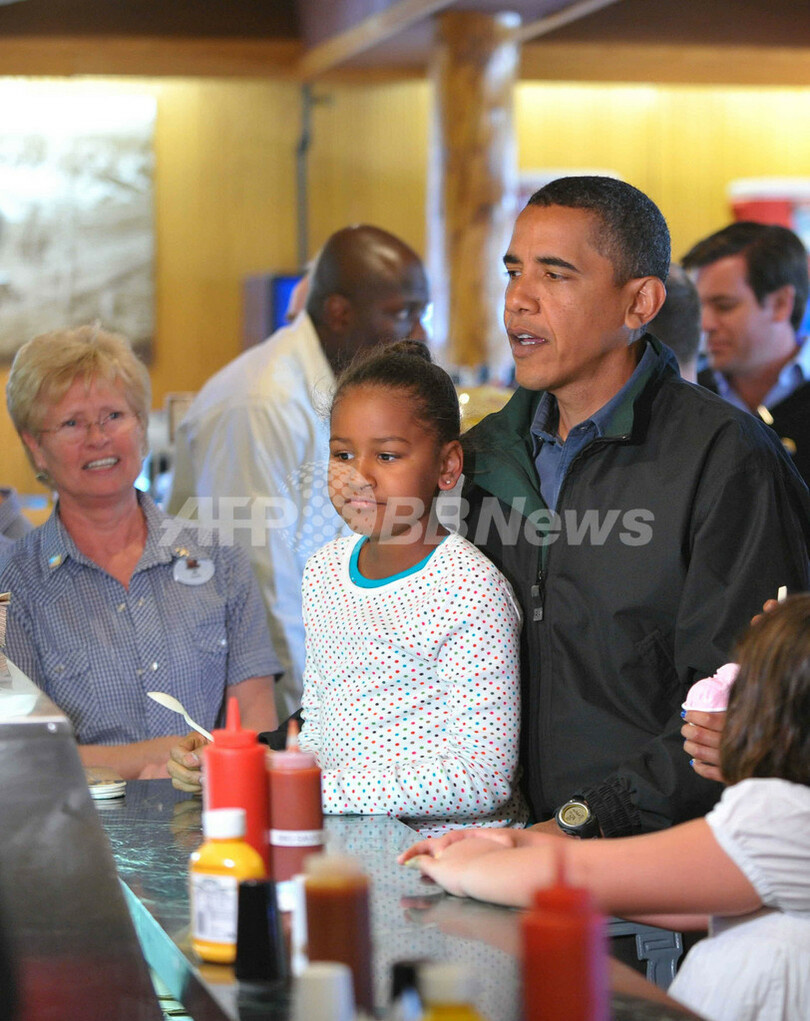 週末をワイオミング(Wyoming)州イエローストーン国立公園(Yellowstone National Park)など、国内の国立公園でハイキング、釣り、川下りなどを楽しんだオバマ一家。休暇の締めくくりにグランドキャニオンを訪れた。