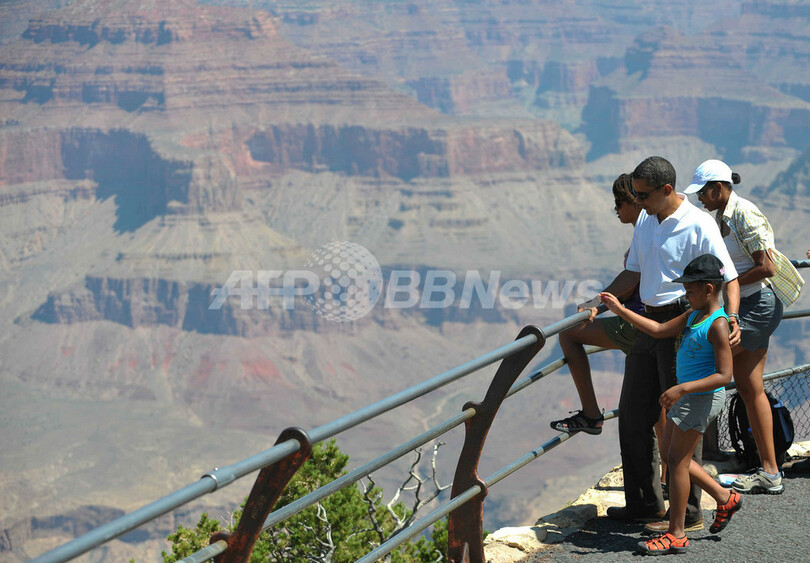【8月17日 AFP】バラク・オバマ(Barack Obama)米大統領は16日、ミシェル夫人(Michelle Obama)と2人の娘、マリア(Malia)さん、サーシャ(Sasha)ちゃんとともにアリゾナ(Arizona)州グランドキャニオン(Grand Canyon)国立公園を訪れ、大自然の絶景を堪能した。