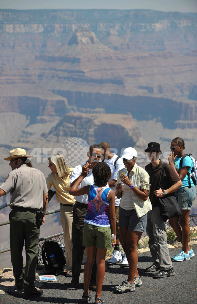 【8月17日 AFP】バラク・オバマ(Barack Obama)米大統領は16日、ミシェル夫人(Michelle Obama)と2人の娘、マリア(Malia)さん、サーシャ(Sasha)ちゃんとともにアリゾナ(Arizona)州グランドキャニオン(Grand Canyon)国立公園を訪れ、大自然の絶景を堪能した。