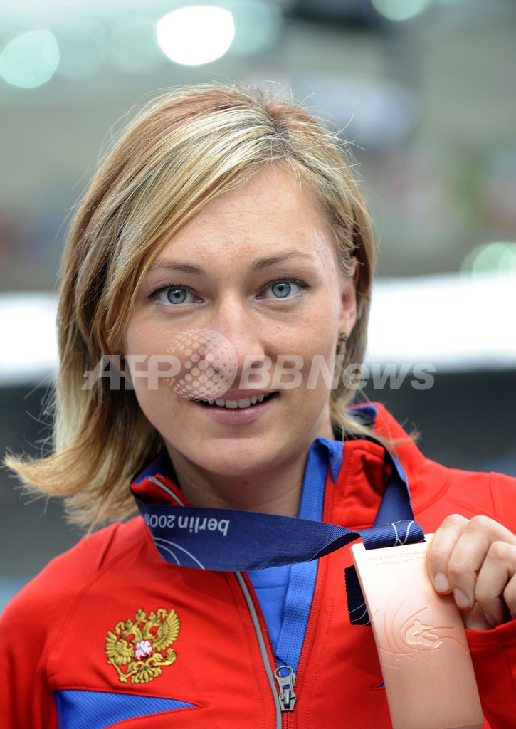 14メートル61を記録したマベル・ガイ(Mabel Gay、キューバ)が2位、14メートル58を記録したアンナ・ピヤティフ(Anna Pyatykh、ロシア)が3位に入った。(c)AFP