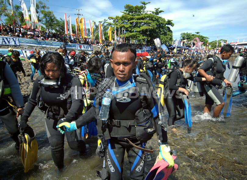 【8月17日 AFP】インドネシアで17日、スキューバダイバー約2500人が一斉にダイビングを行い、同時にスキューバダイビングをした人数のギネス世界新記録(Guinness Book of World Records)が達成された。