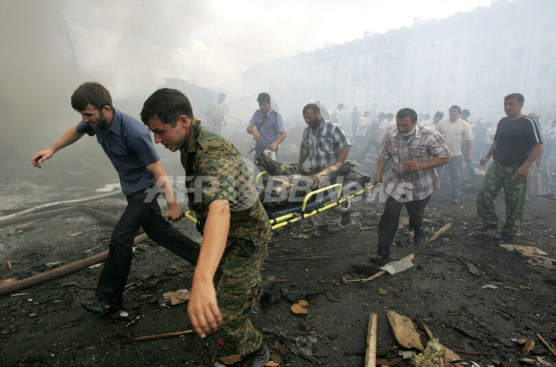 ニュース 戦争・紛争 ロシア・イングーシ共和国で自爆攻撃、20人死亡 2009年8月17日 23:18 発信地:ナズラニ/ロシア [ ロシア・CIS ロシア ] このニュースをシェア ‹ › ❮ 17/17 ❯ ロシア南部カフカス(Caucasus)地方のイングーシ(Ingushetia)共和国の首都ナズラニ(Nazran)で17日、爆発物を積んだトラックが警察施設に突入して爆発、少なくとも20人が死亡した(2009年8月17日撮影)。(c)AFP/KAZBEK BASAYEV 画像作成中 ! 【8月17日 AFP】ロシア南部カフカス(Caucasus)地方のイングーシ(Ingushetia)共和国の首都ナズラニ(Nazran)で17日、爆発物を積んだトラックが警察施設に突入して爆発、少なくとも20人が死亡した。(c)AFP 戦争・紛争 一覧へ> メディア・報道関係・法人の方向け 写真・動画 購入のお問合せ>