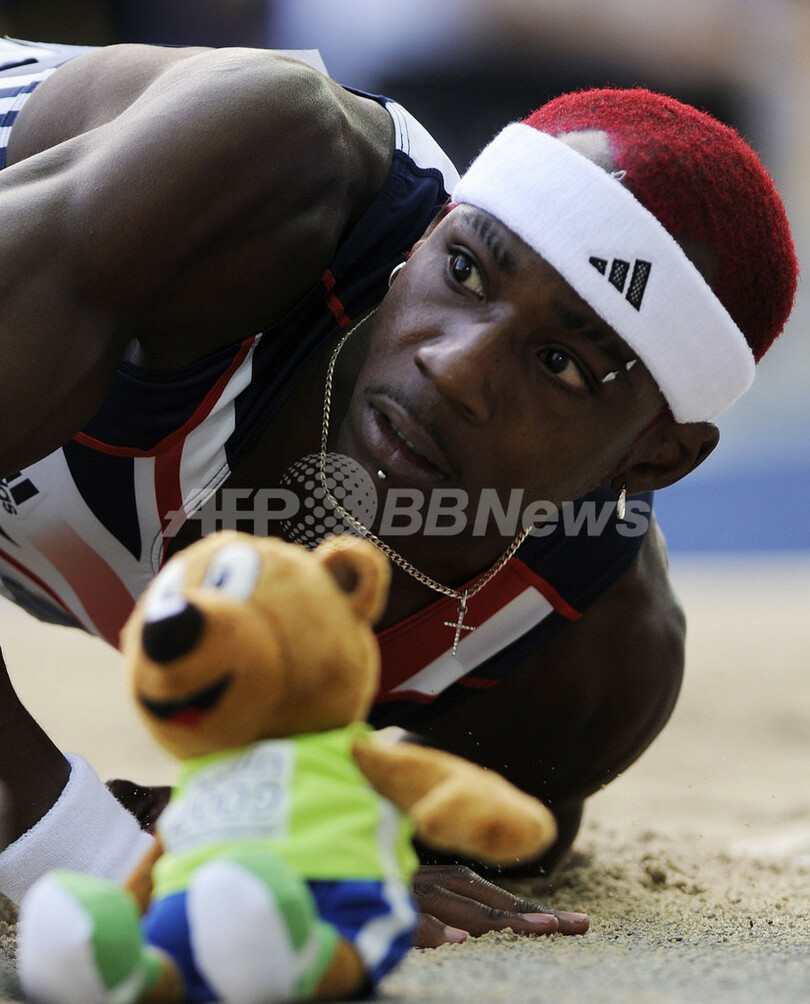 【8月19日 AFP】(20日写真追加)第12回世界陸上ベルリン大会(12th IAAF World Championships in Athletics Berlin)男子三段跳び決勝。北京五輪同種目銀メダリストのフィリップス・イドウ(Phillips Idowu、英国)が、シーズン最高記録となる17メートル73で優勝した。