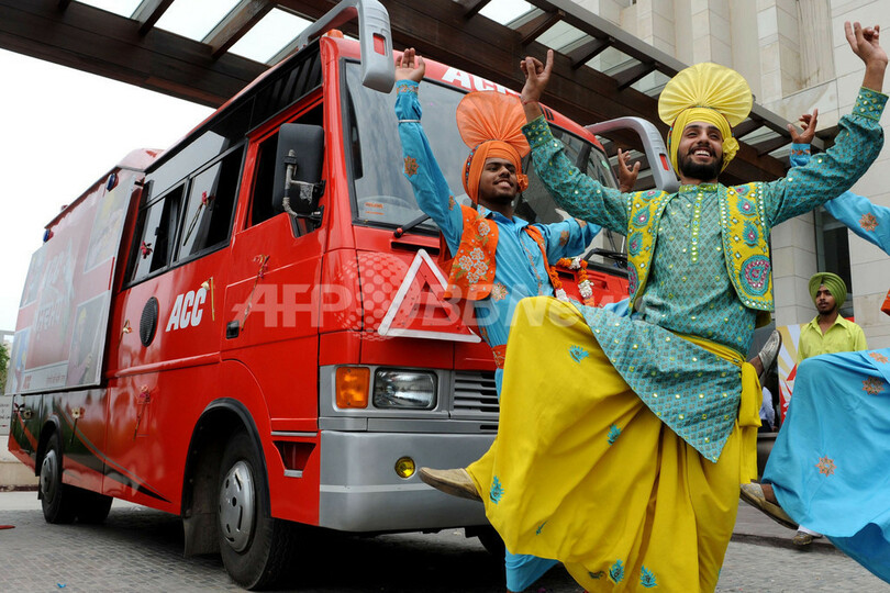 【8月19日 AFP】インド北部パンジャブ(Punjab)州のアムリツァル(Amritsar)で18日、地元セメント大手ACCのダルジット・シン(Daljit Singh)最高経営責任者(CEO)が住宅建設技術の指導活動の一環として、地方部を巡回しながら職人に技術を指導する自動車「ACC Ashwamedh Mobile Van」の運行開始を発表した。シーク教信者らが応援に駆けつけ、地元の民謡と舞踊「バングラ(Bhangra)」を披露する一幕も見られた。(c)AFP
