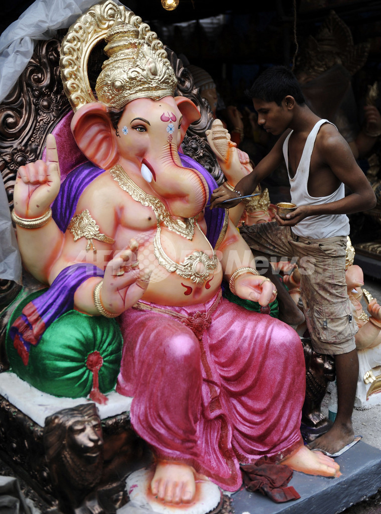 【8月19日 AFP】ヒンズー教の神ガネーシャ(Ganesh)を「オスカー像風」など特異な姿で描いたインド人の画家が、ヒンズー教の強硬派から度重なる脅迫を受けている。