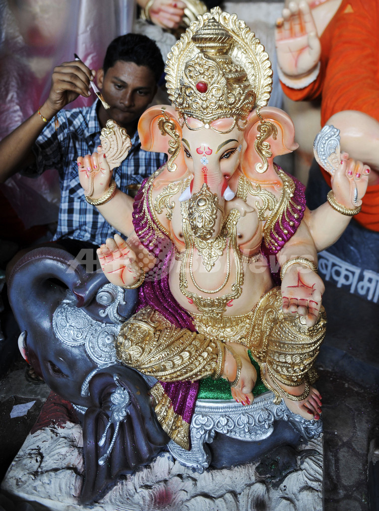 【8月19日 AFP】ヒンズー教の神ガネーシャ(Ganesh)を「オスカー像風」など特異な姿で描いたインド人の画家が、ヒンズー教の強硬派から度重なる脅迫を受けている。