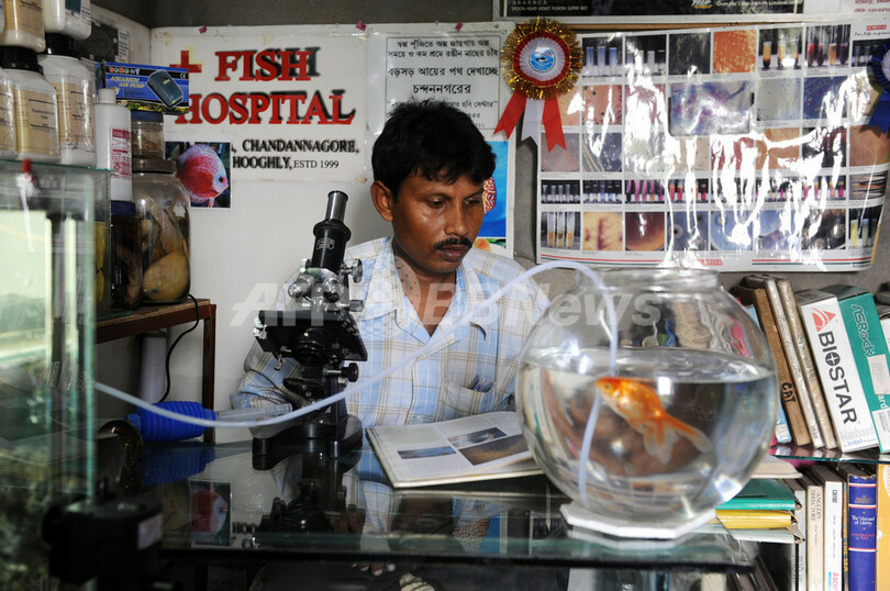 ニュース ライフ こぼれ話 インドの「魚のお医者さん」、「ベッド」数は32床 2009年8月20日 14:55 発信地:インド [ アジア・オセアニア インド ] このニュースをシェア ‹ › ❮ 6/6 ❯ インド・コルカタ(Kolkata)の北約50キロにある町シャンデルナゴル(Chandannagore)にある観賞魚の病院で、病気の鑑賞魚のひれから採取した菌を顕微鏡で調べるパティ・パバン・ハルダー(Patit Paban Halder)さん(2009年8月18日撮影)。(c)AFP/Deshakalyan CHOWDHURY 画像作成中 ! 【8月20日 AFP】インド・コルカタ(Kolkata)の北約50キロにある町シャンデルナゴル(Chandannagore)には、観賞魚の専門病院がある。経営しているのは、鑑賞魚が大好きというパティ・パバン・ハルダー(Patit Paban Halder)さん。魚専用のユニークな「ベッド」が32床ある院内で、夫人や息子とともに病気の魚の治療をしている。(c)AFP ライフ 一覧へ> メディア・報道関係・法人の方向け 写真・動画 購入のお問合せ>