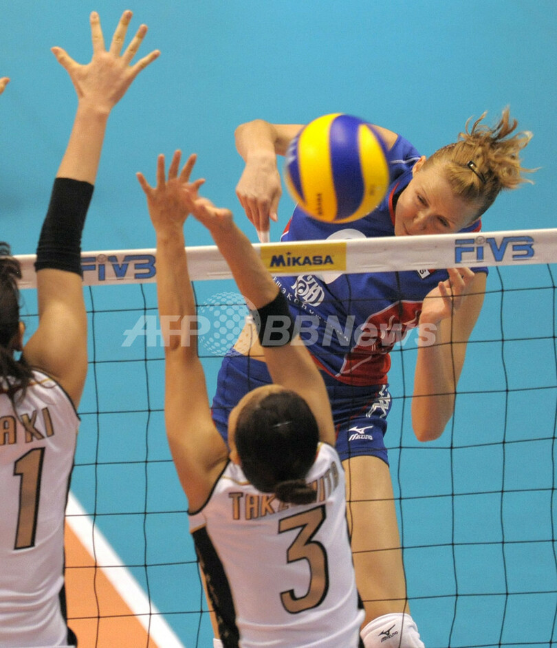 スポーツ スポーツ その他 女子バレー日本、ロシアに敗れる ワールドグランプリ 2009年8月20日 21:49 発信地:東京 [ アジア・オセアニア 東京 ] このニュースをシェア ‹ › ❮ 3/7 ❯ 女子バレーボール、ワールドグランプリ2009(%%FIVB World Grand Prix 2009%%)決勝ラウンド、日本対ロシア。日本はセットカウント1-3(17-25、23-25、29-27、14-25)で敗れた。写真は荒木絵里香(%%Erika Araki%%)、竹下佳江(%%Yoshie Takeshita%%)のブロックに対しスパイクを放つロシアのオルガ・ファテエワ(%%Olga Fateeva%%)。(2009年8月20日撮影)(c)AFP/TOSHIFUMI KITAMURA 画像作成中 ! 【8月20日 AFP】(一部訂正、写真追加)女子バレーボール、ワールドグランプリ2009(FIVB World Grand Prix 2009)決勝ラウンド、日本対ロシア。試合は日本がセットカウント1-3(17-25、23-25、29-27、14-25)で敗れた。(c)AFP スポーツ その他 一覧へ> メディア・報道関係・法人の方向け 写真・動画 購入のお問合せ>
