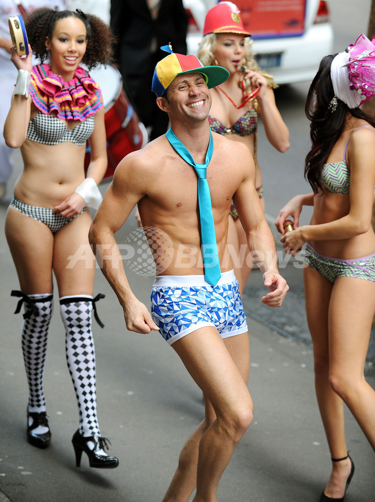 【8月21日 AFP】オーストラリア・シドニー(Sydney)市内で20日、英水着メーカーの「スピード(SPEEDO)」初の下着ライン「スピード・アンダーボディ(Speedo Underbody)」のプロモーションイベントが行われ、モデルたちが新作下着を身につけて登場した。また、会場となった市内の「スピード」店舗にはアンバサダーを務める地元出身モデル、ラーラ・ビングル(Lara Bingle)が登場した。(c)AFP