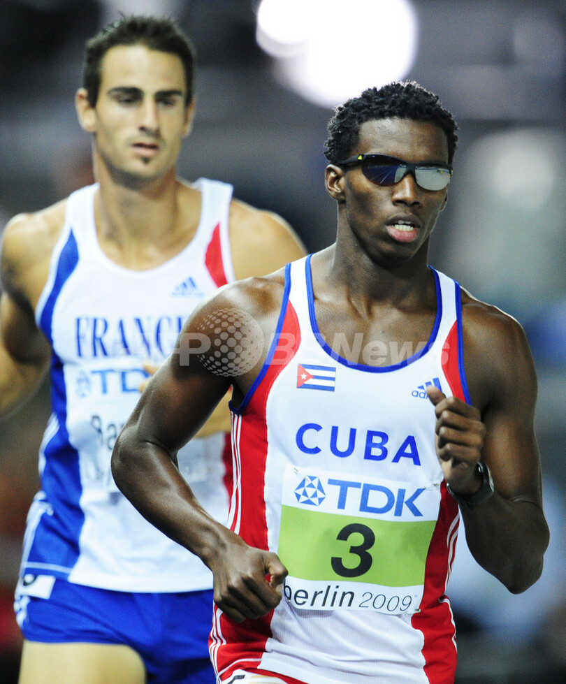 2位には8640点でレオネル・スアレス(%%Leonel Suarez%%、キューバ)が、3位には8528点でアレクサンドル・ポゴレロフ(%%Aleksandr Pogorelov%%、ロシア)が入り、池田大介(%%Daisuke Ikeda%%、日本)は自己ベストとなる7788点で26位だった。写真は1500メートルに臨むレオネル・スアレス(右)。(2009年8月20日撮影)(c)AFP/FRANCK FIFE