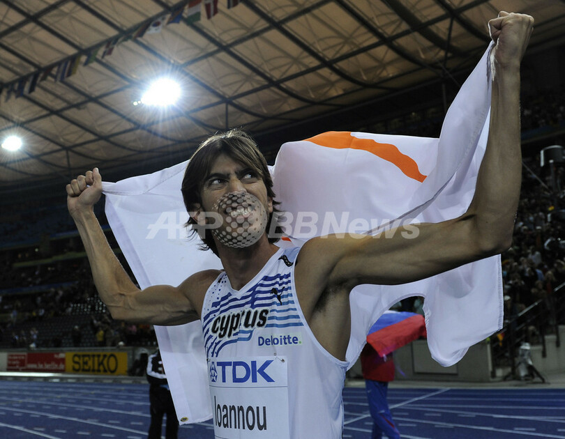2位にはルイバコフと同記録ながらも跳躍回数が多かったキリアコス・イオアヌ(%%Kyriakos Ioannou%%、キプロス)が、3位には同じく同記録で跳躍回数によりラウル・シュパンク(%%Raul Spank%%、ドイツ)とシルウェスター・ベドナレク(%%Sylwester Bednarek%%、ポーランド)が入った。写真は国旗を掲げるキリアコス・イオアヌ。(2009年8月21日撮影)(c)AFP/ADRIAN DENNIS