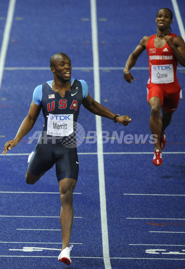 【8月22日 AFP】(23日写真追加)第12回世界陸上ベルリン大会(12th IAAF World Championships in Athletics Berlin)男子400メートル決勝。北京五輪金メダリストのラショーン・メリット(LaShawn Merritt、米国)が、シーズン世界最高の44秒06で優勝した。